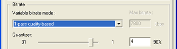 "1-pass quality-based" - это однопроходный режим работы кодека с переменным битрейтом, но постоянным квантизером. Для этого режима задаётся квантизер, который будет возможно выставить немного ниже данной вкладки: