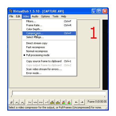 В целом, при заданном профиле, максимально достижимый битрейт (В), вычисляется автоматически и его нельзя изменить вручную. При отключённых профилях, он так же вычисляется автоматически и его можно исправить, но нет смысла это делать. Напомню, как лучше всего производить много проходное видео. Я все операции делаю в программе VirtualDub, как в наиболее удобной для себя. После настроек фильтров в VirtualDub нужно переходить к настройке кодека. Покажу конкретную последовательность действий при сохранении. Для того, что бы кодировать двух проходное видео, нужно записать скрипт в VirtualDub и запустить его на исполнение. Самого скрипта вы писать не будете, только произведёте определённые действия в VirtualDub. Итак, добавление первого прохода в скрипт:
