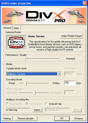 Если ранее у вас стояла другая версия кодека DivX или вы что-то сделали, сами не зная что (да и вообще, перед началом работы не помешает), нажмите кнопку "Restore defaults", которая находится внизу этого окна.