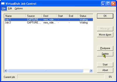 Теперь узнаем, как посмотреть, что занесено в наш скрипт и как запустить его. Для того, что бы посмотреть скрипт, нужно зайти в меню "File"->"Job control…" или просто нажав клавишу F4. Если в вашем скрипте есть какие-то лишние записи, то можно их удалить выбрав их и нажав на кнопку "Delete". Убедились, что в скрипте нет лишних записей и есть то, что нам надо. Теперь, запустить его можно прямо из этого окна, но процесс при этом очень не наглядный. Мне гораздо больше нравится запускать напрямую скрипт из VirtualDub. Для этого, из меню "File"->"Run script…" запускаем файл "VirtualDub.jobs", который находится в той же папке, что и сам VirtualDub. После окончания сжатия, нужно будет удалить этот файл или почистить скрипт из окна "Job control". Но вернёмся к настройкам кодека. 3 "Encoding bitrate" Ползунком мы выставляем битрейт с которым хотим произвести сжатие. В окошке можно набрать этот битрейт вручную. Как посчитать битрейт для вашего видео я описал в статье "Дополнения по Mpeg - видео". Если быть кратким, к этому есть два подхода: - Первый подход. Мы сжимаем видео для записи на CD. В этом случае, битрейт будет зависеть от ёмкости диска и продолжительности видео. Качество видео будет зависеть от разрешения видео.
